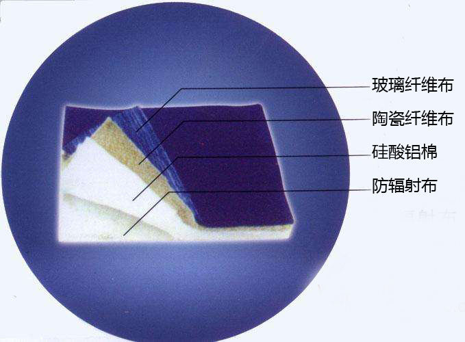 窗簾由四層防火材料制成,分別有玻璃纖維布、硅酸鋁棉、陶瓷纖維布和輻射防護布。