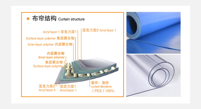布簾材質(zhì) | 高強度PVC刀刮涂層基布 |